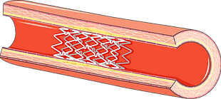 Stent in the blood vessel help keep it open and allow blood flow